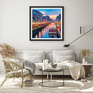 Das Poster Abend voller Licht und Spaß ist eine unglaublich malerische Komposition, die mit der Schönheit der Stadtlandschaft nach Einbruch der Dunkelheit begeistert. Das zentrale Element ist der Kanal mit einem Boot, umgeben von stimmungsvollem Licht, das sich auf der Wasseroberfläche spiegelt. Die Pastellfarben der untergehenden Sonne schaffen eine warme und romantische Atmosphäre und verleihen dem Ganzen einen einzigartigen Charme.