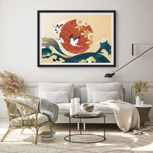 Poster in einem schwarzem Rahmen - Japanische Komposition mit Kranichen und Wellen - 70x50cm - Japanisches Märchen - Moderne Wanddekoration für Wohnzimmer und Schlafzimmer ARTTOR