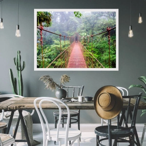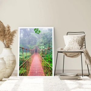 Poster - Eine Hängebrücke in einem tropischen Wald, eingehüllt in Nebel - 50x70cm - Über den Kronen aufgehängt - Moderne Wanddekoration für Wohnzimmer und Schlafzimmer ARTTOR