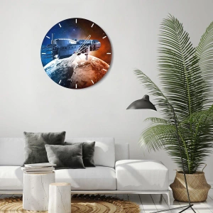 Die Uhr besteht aus 4 mm dickem Sicherheitsglas Glas. Die Herstellungstechnologie der Uhr entspricht der Sicherheitsklasse 2B2 gemäß der Norm PN-EN 12600: 2004, die Stoßfestigkeit garantiert. Die Uhr auf dem Glas ist bereit zu hängen - es hat einen Metallanhänger, einen Anhänger auf der Rückseite der Uhr und einen Schaumstoffabstand, der einen gleichmäßigen Abstand zwischen der Uhr und der Wand reguliert. Die Uhr hat einen geräuschlosen Schwimmmechanismus, der von einer 1,5-V-Batterie betrieben wird - AA-Batterie inbegriffen).