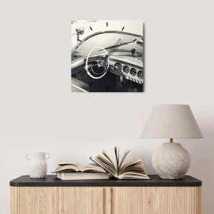 Wanduhr - Glasuhr - Oldtimer-Innenraum mit Lenkrad und Armaturenbrett - 30x30cm - Wetter für die Reichen - Moderne Wanddekoration für Wohnzimmer, Küche und Schlafzimmer ARTTOR