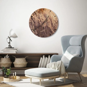 - Die Uhr zeigt goldene Gräser, die im Licht der untergehenden Herbstsonne im Wind wiegen. Die natürliche Komposition voller warmer Töne bringt eine Atmosphäre der Ruhe und den Charme der Natur in den Innenraum.