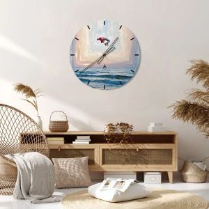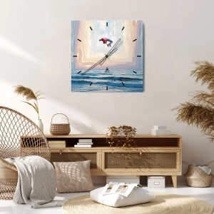 Wanduhr - Glasuhr - Surrealer Sprung über das Meer im Rahmen - 30x30cm - In eine andere Dimension - Moderne Wanddekoration für Wohnzimmer und Schlafzimmer ARTTOR