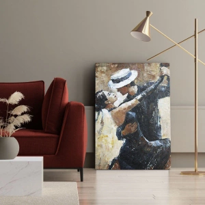 - Dieses Gemälde zeigt ein Paar, das im romantischen Stil Tango tanzt. Ein sinnlicher und eleganter Akzent, perfekt für Innenräume voller Leidenschaft und Emotionen.