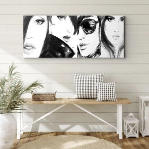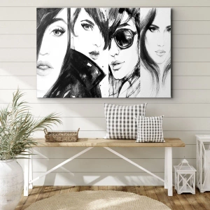 - Das Gemälde zeigt stilvolle Frauenporträts in monochromen Tönen, die Eleganz und Ausdruckskraft betonen. Perfekt für moderne Innenräume.
