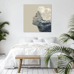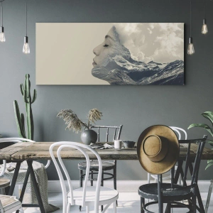 Bild auf Leinwand - Leinwandbild - Silhouette einer Frau mit einer Berglandschaft im Hintergrund - 50x70cm - Die Schönheit der Elemente der Natur - Moderne Wanddekoration für Wohnzimmer und Schlafzimmer ARTTOR
