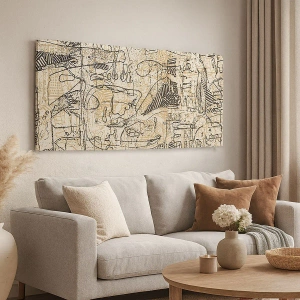 Bild auf Leinwand - Leinwandbild - Abstrakte Muster und Linien auf beigem Hintergrund - 50x70cm - Es wartet darauf, entschlüsselt zu werden - Moderne Wanddekoration für Wohnzimmer und Schlafzimmer ARTTOR