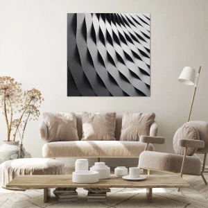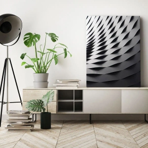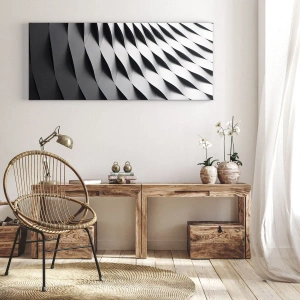 Bild auf Leinwand - Leinwandbild - Abstraktes geometrisches Muster in Schwarz-Weiß-Tönen - 140x50cm - Auf der Oberfläche der Wellen - Moderne Wanddekoration für Wohnzimmer und Schlafzimmer ARTTOR