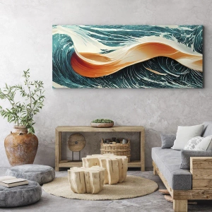 Bild auf Leinwand - Leinwandbild - Dynamische Meereswellen mit abstraktem Band - 50x70cm - Traum eines Surfers - Moderne Wanddekoration für Wohnzimmer und Schlafzimmer ARTTOR