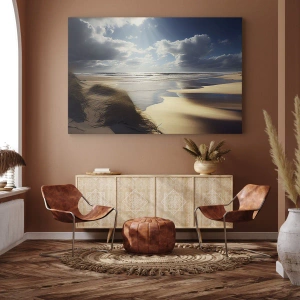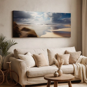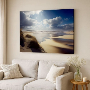Bild auf Leinwand - Leinwandbild - Ein wilder Strand mit Dünen und blauem Himmel - 120x80cm - Strand, wilder Strand - Moderne Wanddekoration für Wohnzimmer und Schlafzimmer ARTTOR