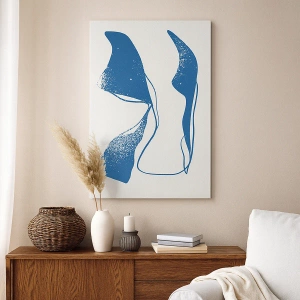 Bild auf Leinwand - Leinwandbild - Abstrakte Formen in Blautönen auf weißem Hintergrund - 50x70cm - Geflügelte Abstraktion - Moderne Wanddekoration für Wohnzimmer und Schlafzimmer ARTTOR