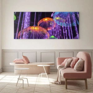 Glasbild - Bild auf glas - Bunte Lichtstrukturen, die an Quallen erinnern - 50x70cm - Lichtbrunnen - Moderne Wanddekoration für Wohnzimmer und Schlafzimmer ARTTOR