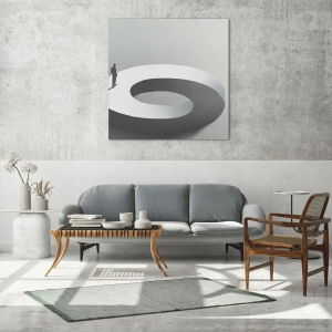 Glasbild - Bild auf glas - Eine minimalistische Silhouette eines Mannes auf einem weißen Ring - 50x70cm - Und wie soll man davon klug werden - Moderne Wanddekoration für Wohnzimmer und Schlafzimmer ARTTOR