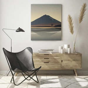 Glasbild - Bild auf glas - Berge und See in warmen Tönen mit reflektierendem Effekt - 50x70cm - Spiegelreflexion - Moderne Wanddekoration für Wohnzimmer und Schlafzimmer ARTTOR