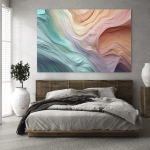 Glasbild - Bild auf glas - Abstrakte Wellen in Pastell- und Regenbogenfarben - 140x50cm - Regenbogenwelle - Moderne Wanddekoration für Wohnzimmer und Schlafzimmer ARTTOR