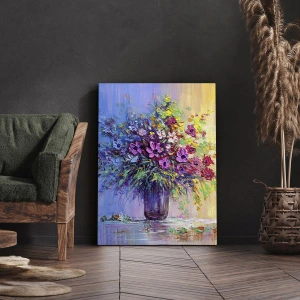 Die Leinwand wird über den Rahmen gespannt. Die Seiten und Kanten werden gedruckt, um das Bild fortzusetzen. Das Bild ist fertig zum Aufhängen an der Wand. Jedes Produkt hat einen am Rahmen befestigten Anhänger und ein Montageset (Schraube + Stift).