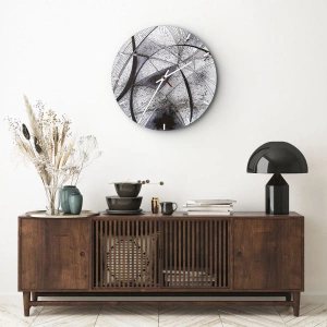 Die Uhr hat ein rundes Format von 30 x 30 cm. Die auf hochwertigem Glas aufgebrachte Grafik garantiert Langlebigkeit, Widerstandsfähigkeit und ein ästhetisches Finish. Der hochauflösende Druck bewahrt alle Details – von den dünnsten Linien bis zu zarten Tonübergängen. Das gesamte Stück beeindruckt durch seine Präzision und seinen originellen Charakter.