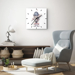 Wanduhr - Glasuhr - Illustration eines Kosmonauten mit erhobener Hand auf weißem Hintergrund - 30x30cm - Bis dann! - Moderne Wanddekoration für Wohnzimmer, Küche und Schlafzimmer ARTTOR