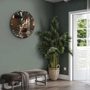 Die Uhr besteht aus 4 mm dickem Sicherheitsglas Glas. Die Herstellungstechnologie der Uhr entspricht der Sicherheitsklasse 2B2 gemäß der Norm PN-EN 12600: 2004, die Stoßfestigkeit garantiert. Die Uhr auf dem Glas ist bereit zu hängen - es hat einen Metallanhänger, einen Anhänger auf der Rückseite der Uhr und einen Schaumstoffabstand, der einen gleichmäßigen Abstand zwischen der Uhr und der Wand reguliert. Die Uhr hat einen geräuschlosen Schwimmmechanismus, der von einer 1,5-V-Batterie betrieben wird - AA-Batterie inbegriffen).