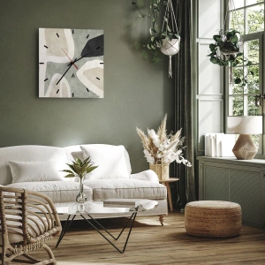 Wanduhr - Glasuhr - Komposition mit schwarzem Motiv - 40x40 cm