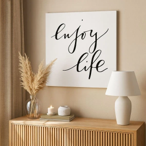 Bild auf Leinwand - Leinwandbild - Das Zitat „Genieße das Leben“ in schwarzer Kalligrafie auf weißem Hintergrund - 100x70cm - Nichts hinzufügen… - Moderne Wanddekoration für Wohnzimmer und Schlafzimmer ARTTOR
