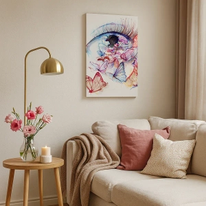 • Frauenauge, Schmetterling, Abstrakt, Menschen, Tiere, Für das Büro, für das Arbeitszimmer, für das Esszimmer, für den Flur, für das Wohnzimmer, für das Schlafzimmer, Weiß, bunt, Vertikal