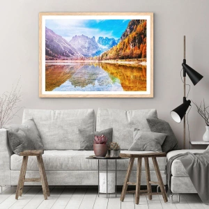 Poster in einem Rahmen aus heller Eiche - Und in den Bergen ist es schon Herbst - 70x100 cm