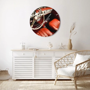 Wanduhr – Vintage Luxury – Innenraum eines klassischen Autos mit roten Sitzen