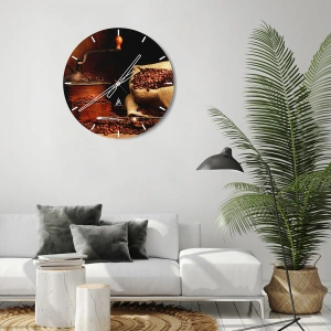 Wanduhr - Glasuhr - Stillleben mit Kaffeebohnen und einer Mühle - 40x40 cm