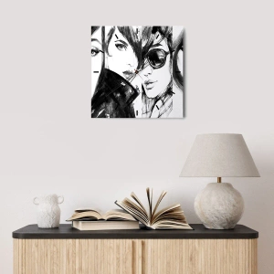Wanduhr - Glasuhr - Zwei weibliche Silhouetten im skizzenhaften Stil - 30x30cm - Schönheit multipliziert - Moderne Wanddekoration für Wohnzimmer, Küche und Schlafzimmer ARTTOR
