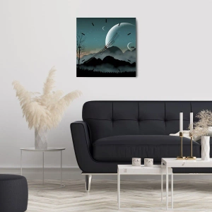 Die Wanduhr "Karneval der Sternennacht" ist ein einzigartiges Dekorationselement, das Funktionalität mit der Schönheit einer kosmischen Landschaft verbindet. Das Zifferblatt zeigt eine geheimnisvolle Landschaft mit zwei Monden, Bergen und einem Sternenhimmel. Dieses einzigartige Motiv entführt den Betrachter in eine Welt mit futuristischer Atmosphäre und unendlichem Raum.