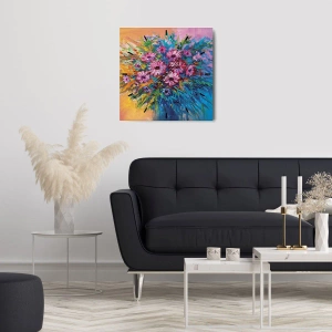 Wanduhr - Glasuhr - Bunte Blumen in einem Strauß vor pastellfarbenem Hintergrund - 30x30cm - Lebensenergie - Moderne Wanddekoration für Wohnzimmer und Schlafzimmer ARTTOR
