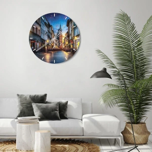 Wanduhr - Glasuhr - Abendliche Straße mit Blick auf die Krakauer Kathedrale - 30x30cm - Krakauer Charme - Moderne Wanddekoration für Wohnzimmer und Schlafzimmer ARTTOR