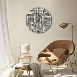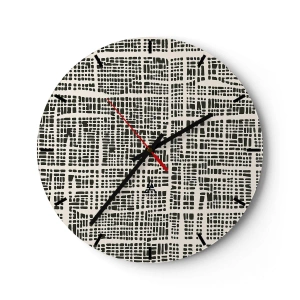 Wanduhr - Glasuhr - Ein geometrisches Muster, das einem Gitter auf hellem Hintergrund ähnelt - 30x30cm - Gewebte Komposition - Moderne Wanddekoration für Wohnzimmer und Schlafzimmer ARTTOR