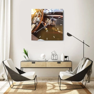 Wanduhr - Glasuhr - Oldtimer-Innenraum mit Holzverkleidung - 30x30cm - Ein Hauch von Luxus aus der Vergangenheit - Moderne Wanddekoration für Wohnzimmer, Küche und Schlafzimmer ARTTOR