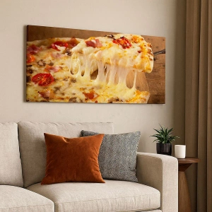 Die Leinwand wird über den Rahmen gespannt. Die Seiten und Kanten werden gedruckt, um das Bild fortzusetzen. Das Bild ist fertig zum Aufhängen an der Wand. Jedes Produkt hat einen am Rahmen befestigten Anhänger und ein Montageset (Schraube + Stift).