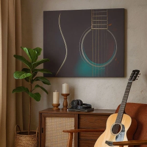 Bild auf Leinwand - Leinwandbild - Akustikgitarre in dunklem, elegantem Licht - 50x70cm - Einen Moment bevor es ertönt - Moderne Wanddekoration für Wohnzimmer und Schlafzimmer ARTTOR