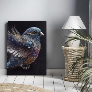 Bild auf Leinwand - Leinwandbild - Ein Spatz im Space-Age-Stil mit Diamantglanz - 50x70cm - Diamantsperling - Moderne Wanddekoration für Wohnzimmer und Schlafzimmer ARTTOR