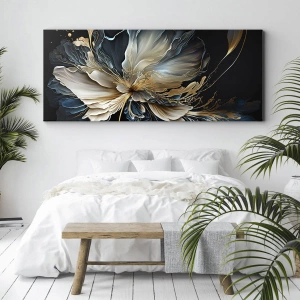 Die Leinwand wird über den Rahmen gespannt. Die Seiten und Kanten werden gedruckt, um das Bild fortzusetzen. Das Bild ist fertig zum Aufhängen an der Wand. Jedes Produkt hat einen am Rahmen befestigten Anhänger und ein Montageset (Schraube + Stift).