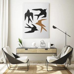 Glasbild - Bild auf glas - Vier fliegende Schwalben im minimalistischen Stil - 50x70cm - Schwalbenspaß - Moderne Wanddekoration für Wohnzimmer und Schlafzimmer ARTTOR