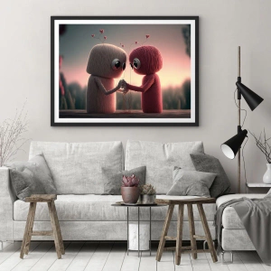 Poster in einem schwarzem Rahmen - Garnfiguren in einer bezaubernden Umgebung mit Herzmotiven - 70x50cm - Jeder darf lieben - Moderne Wanddekoration für Wohnzimmer und Schlafzimmer ARTTOR