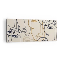 Bild auf Leinwand - Leinwandbild - Minimalistische Strichzeichnungen von Gesichtern auf hellem Hintergrund - 120x50cm - Das Porträt wird multipliziert - Moderne Wanddekoration für Wohnzimmer und Schlafzimmer ARTTOR