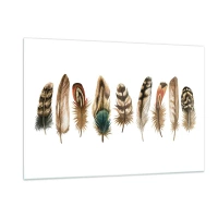 Glasbild - Bild auf glas - Eine Komposition aus bunten Federn auf weißem Hintergrund - 120x80cm - Eine federleichte Variante - Moderne Wanddekoration für Wohnzimmer und Schlafzimmer ARTTOR
