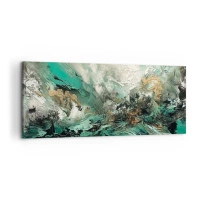 Bild auf Leinwand - Leinwandbild - Smaragdgrüne und schwarze Brandung - 100x40 cm