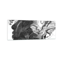 Glasbild - Bild auf glas - Abstraktes Gesicht in Schwarzweiß mit dynamischen Linien. - 140x50cm - Verstrickt in Träume - Moderne Wanddekoration für Wohnzimmer und Schlafzimmer ARTTOR