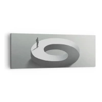 Bild auf Leinwand - Leinwandbild - Ein Mann auf einer grauen, abstrakten Struktur - 140x50cm - Und wie soll man davon klug werden - Moderne Wanddekoration für Wohnzimmer und Schlafzimmer ARTTOR