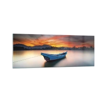 Glasbild - Bild auf glas - Ein Boot auf dem Wasser während eines malerischen Sonnenuntergangs - 140x50cm - Eine gute Nacht kommt - Moderne Wanddekoration für Wohnzimmer und Schlafzimmer ARTTOR