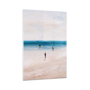 Glasbild - Bild auf glas - Ein Strand mit Menschen vor der Kulisse eines ruhigen Meeres - 80x120cm - Natürliches Bedürfnis - Moderne Wanddekoration für Wohnzimmer und Schlafzimmer ARTTOR