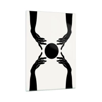 Glasbild - Bild auf glas - Schwarze Hände in einer symmetrischen Komposition mit einer Kugel - 80x120cm - Geheimes Zeichen - Moderne Wanddekoration für Wohnzimmer und Schlafzimmer ARTTOR