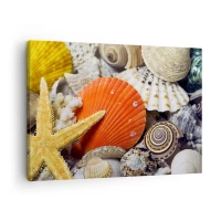 Bild auf Leinwand - Leinwandbild - Muscheln und Seesterne in einer Meereskomposition - 70x50cm - Schätze des Ozeans - Moderne Wanddekoration für Wohnzimmer und Schlafzimmer ARTTOR